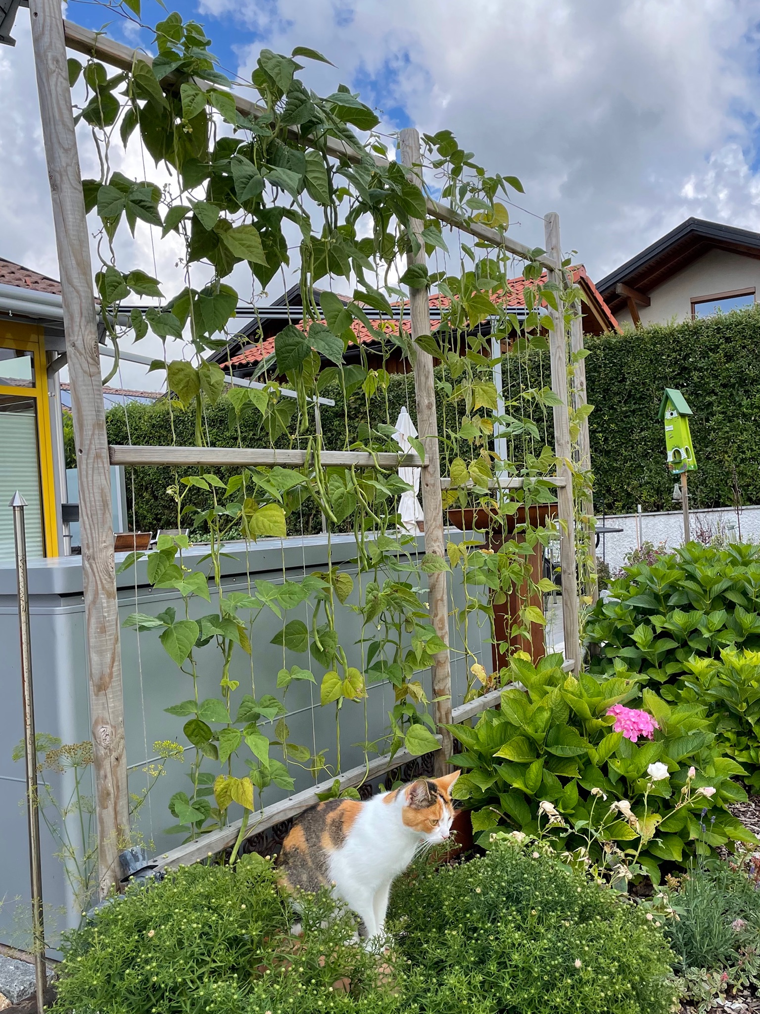 Heuer war kein Gartenjahr für Fisolen. Gerade als sie aus dem Boden kamen, hatten wir einen sehr zerstörerischen Hagel. Die Körner waren so groß, dass sie am nächsten Morgen noch zwischen den jungen Bohnenpflanzen lagen. Daher sind fast alle erfroren.