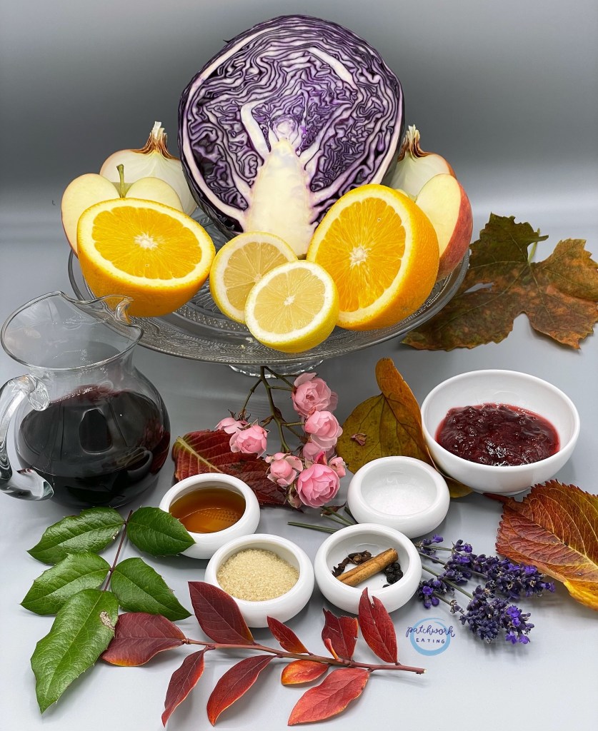 Zwiebel goldbraun in Öl anrösten und mit dem Zucker karamellisieren. Während des Karamellisierens die Hitze zurücknehmen, der Zucker soll schmelzen und leicht anbräunen, die Zwiebel werden knusprig. Mit dem Rotwein, dem Orangen- und Zitronensaft ablöschen. Die Gewürze unbedingt in ein kleines Leinensäckchen oder einen Teefilter geben, damit sie vor dem Servieren problemlos aus dem Kraut gefischt werden können. Das Kraut und den Apfel dazugeben, alles gut umrühren und bei schwacher Hitze zwei bis drei Stunden köcheln. Immer wieder gut umrühren, bei Bedarf etwas Wasser dazugeben, es soll sich am Topfboden nichts anlegen.