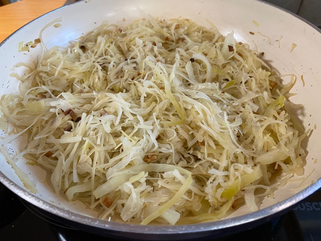 - Wenn man lieber mehr Nudeln mag, als Kraut, dann die Hälfte der Krautmasse wegnehmen und einfrieren. Bei Bedarf auftauen, wärmen und Nudeln drunter mischen. Das ergibt eine schnelle Mahlzeit.